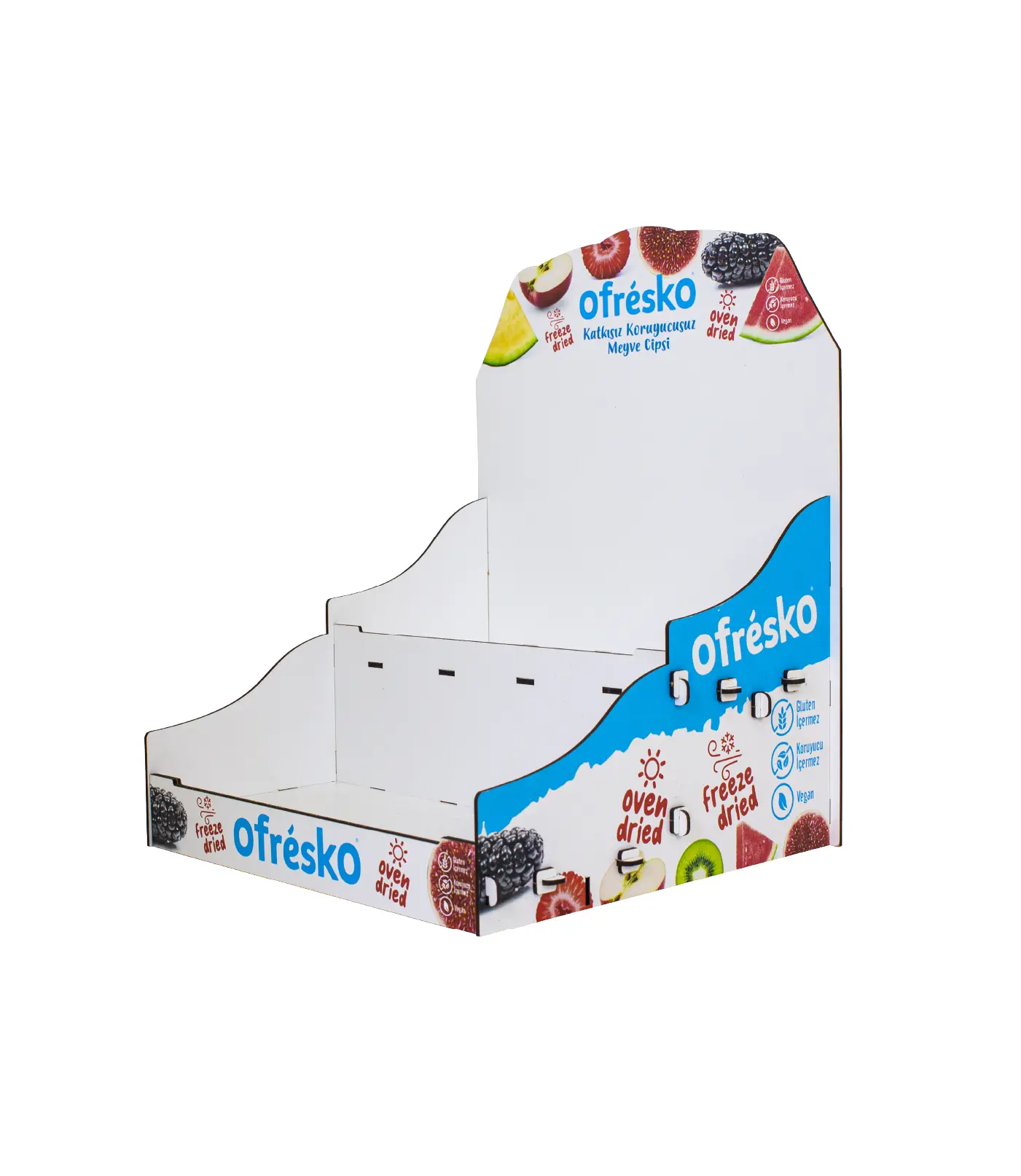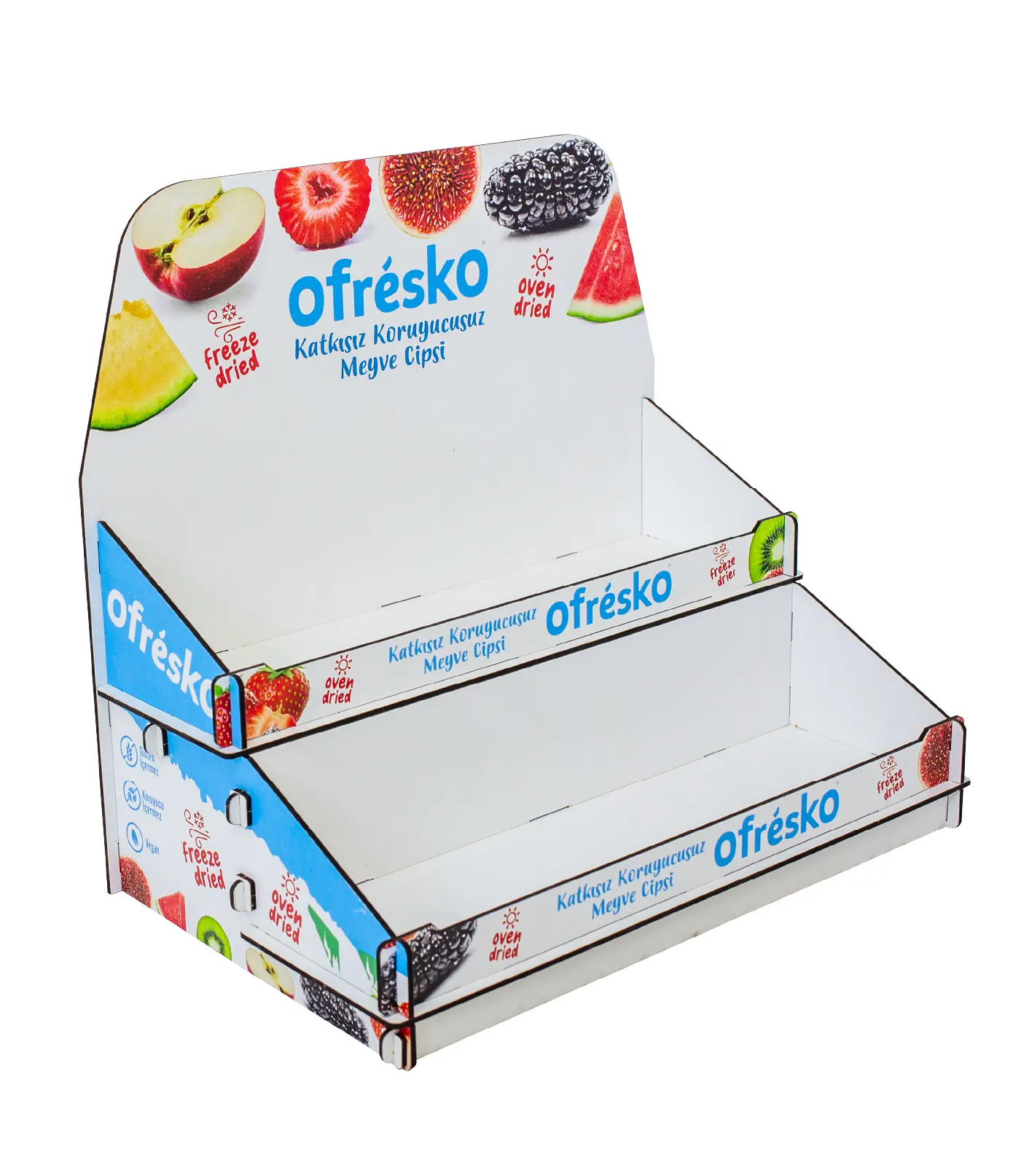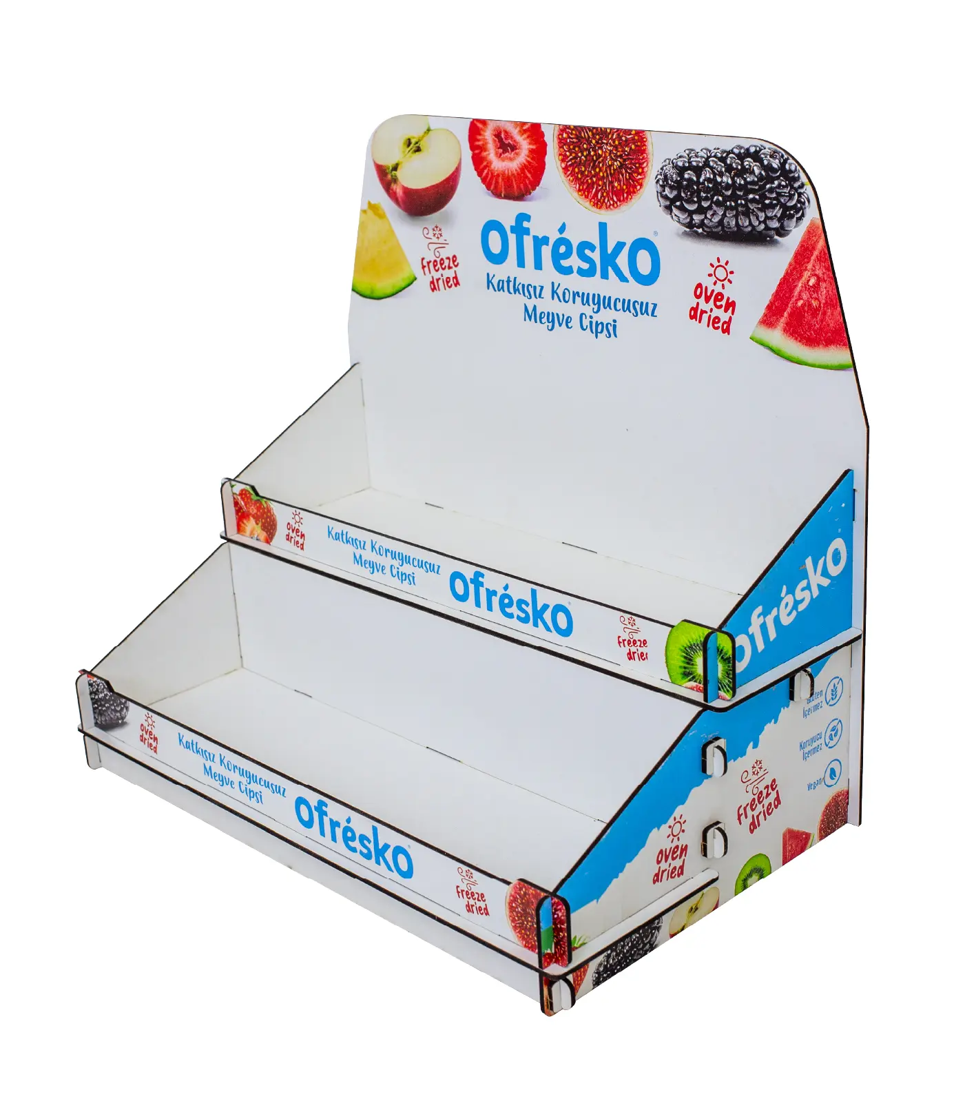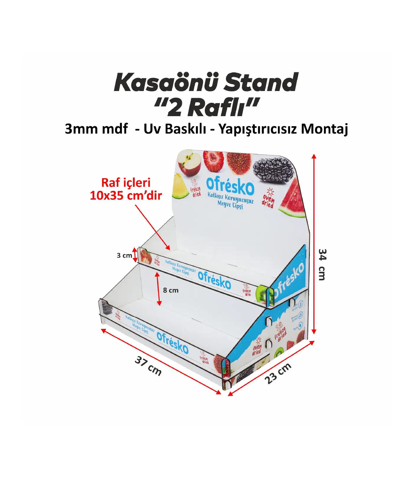 Daha fazla sergileme alanı sunan 2 katlı masaüstü ahşap stand. Çift raflı tasarımı, dayanıklı gövdesi ve marka baskı seçeneği ile profesyonel bir sunum sağlar. Hemen inceleyin!