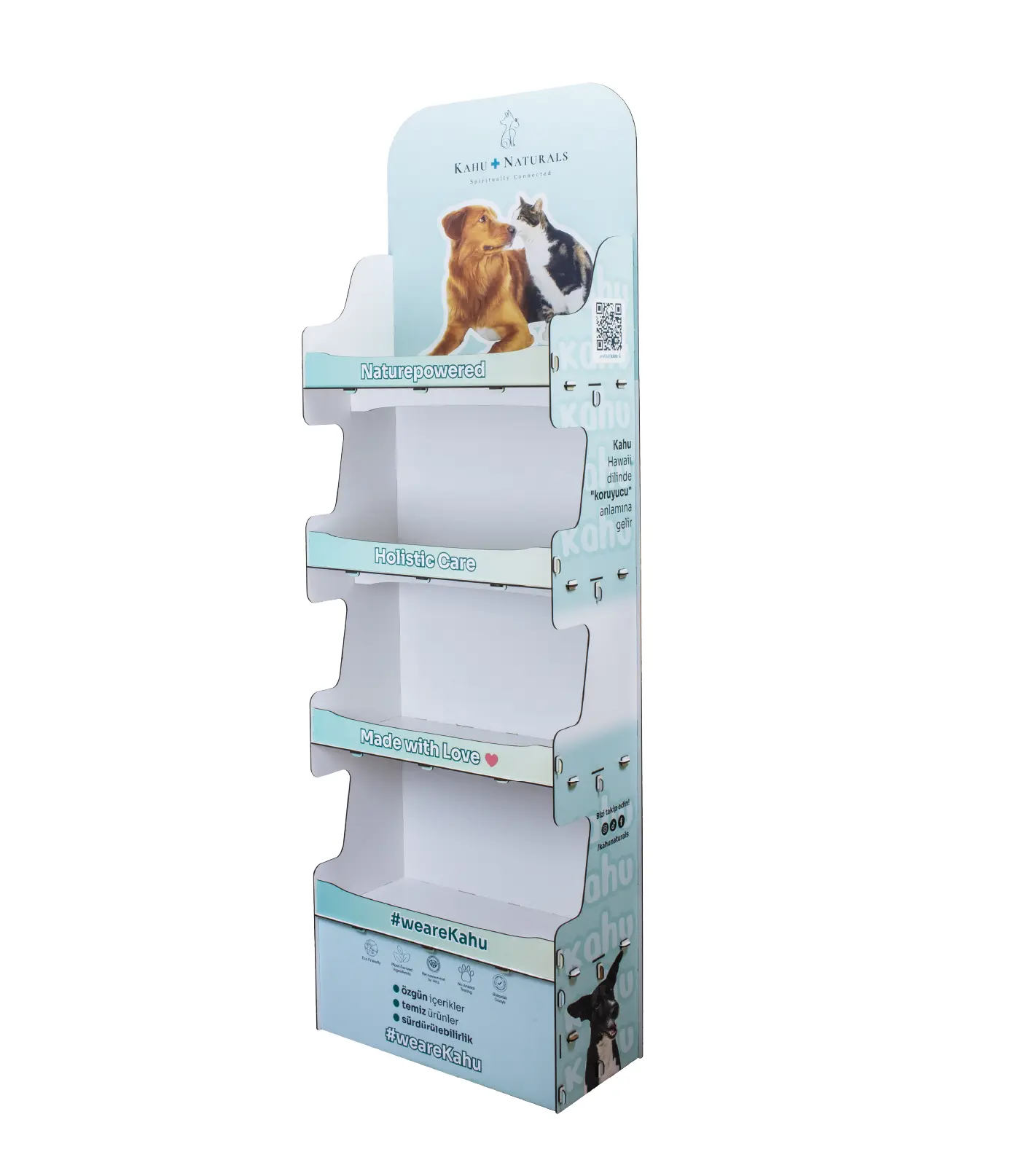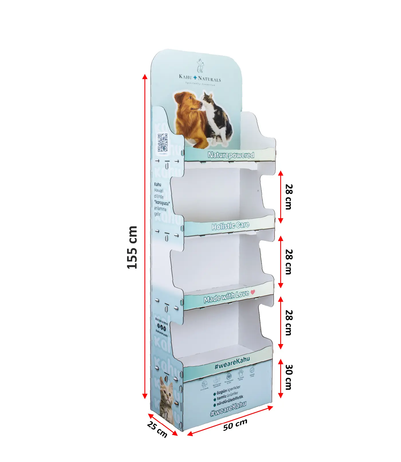 Ürünlerinizi göz hizasına taşıyan ahşap yerden yüksek stand. Dayanıklı ayak yapısı, şık ahşap dokusu ve marka baskı imkanıyla profesyonel sunumlar için idealdir.